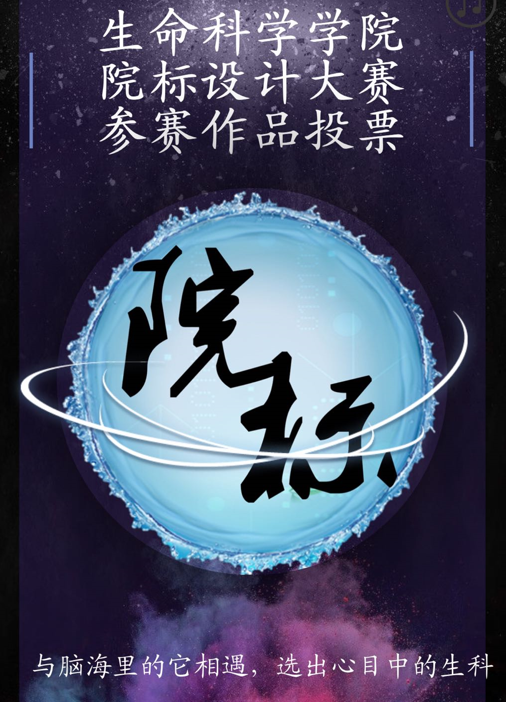 本次比赛中夺冠的院标是从“神农尝百草”中神鸟送种传说又或“四神汤与四神鸟”的启发,中医药有上千年传承,与现代医学系统研究的碰撞,用现在生物学手段系统阐释中医药作用机理是万象城娱乐awc线路的使命;右为神鸟象征传统医学,作为DNA双螺旋象征现代生物学手段,“衔”寓意使命;正中为学院英文简写,外圆象征和谐、完美;内圈标有学校及学院中英文全称。生命科学院院标不仅象征学院的理念和定位,而且也寓意学院美好的发展前景。