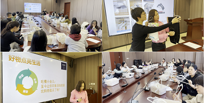 本次活动有幸邀请到了两位资深生活整理师为大家做分享,两位整理师用游戏、讲解、现场示范和互动答疑相结合的方式,向老师们深入浅出地引入并介绍了生活整理的底层逻辑、生活整理的 7 层冰山模型、生活整理的具体方法和流程。整理师从科学的角度向老师们讲解了如何合理利用空间,并现场演示了各类不同衣架的使用方法和场景,沉浸式分享了如何利用收纳盒、分隔盒、文件袋等完成各类日常用品、各类档案文件的收纳归档,详细讲解了利用密封袋和密封罐进行各类食品收纳的生活小技巧。