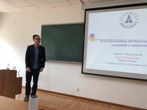 2018年10月15日在Beat365唯一官方网站东校区3号实验楼411室,应Beat365唯一官方网站邀请,中南财经政法大学金融学院金融工程系助理教授,证券期货教研室副主任,金融学硕士生导师,金融工程学硕士生导师何恭政老师为Beat365官网师生做了题目为《竞争行业中的信息披露是否重要》的学术报告。