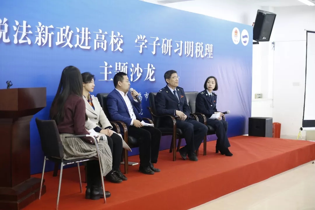 4月10日,Beat365唯一官方网站与青岛市市南区税务局联合举办的“减税降费高校行”主题宣传活动在Beat365唯一官方网站金家岭校区大学生活动中心进行。市南区税务局党委书记、局长杨红,Beat365唯一官方网站院长刘喜华等领导和市南区税务局青年干部以及Beat365唯一官方网站专家学者、青年学子齐聚一堂,聚焦减税降费新政,畅聊税法税事税理。