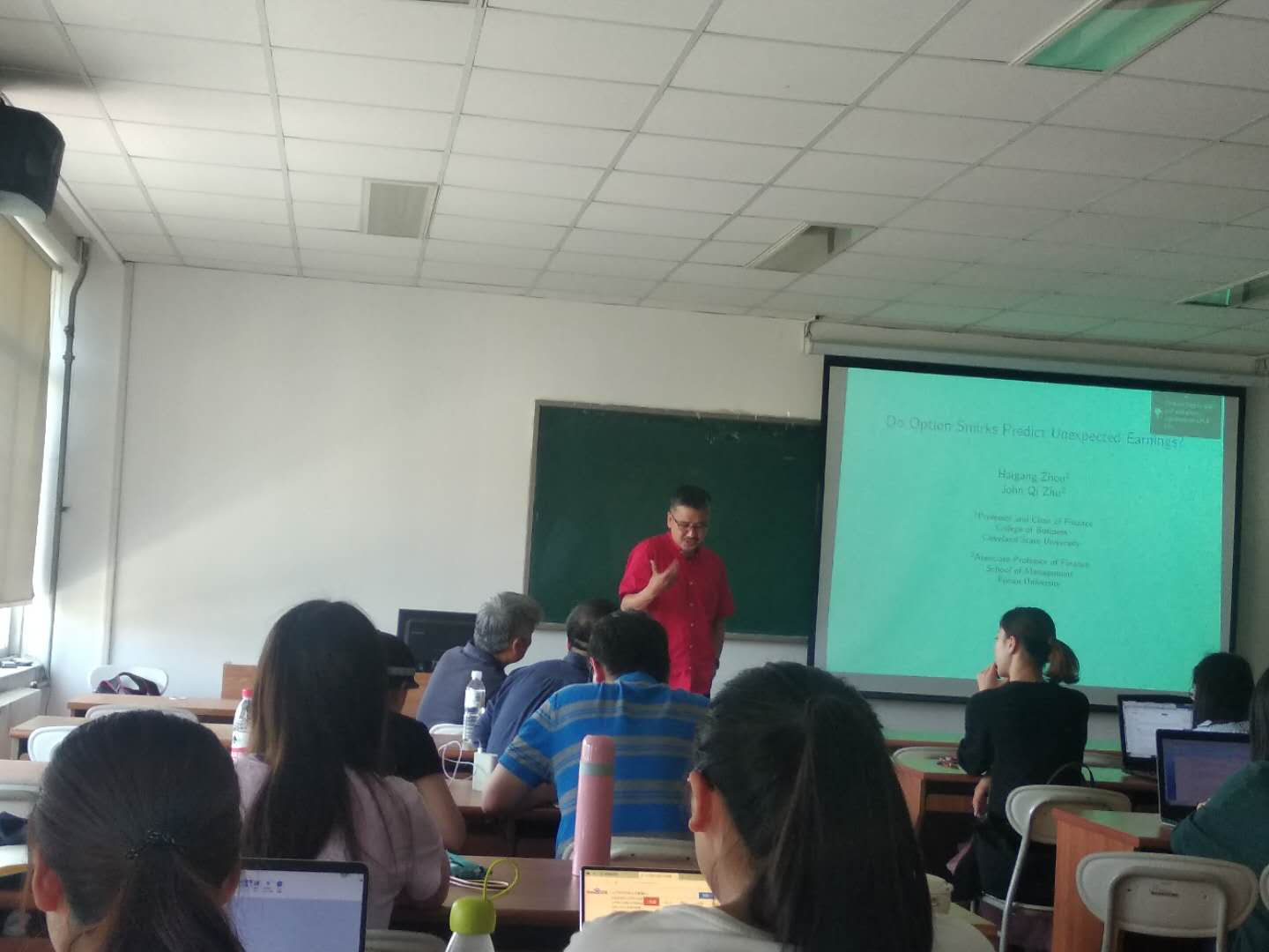 2019年5月28日下午,周海刚教授应邀到Beat365官网开展学术交流与指导,并做客Beat365唯一官方网站2019第12期“经济学名家讲堂”,为师生做了《Do Option Smirks Predict Unexpected Earnings》的精彩学术报告。