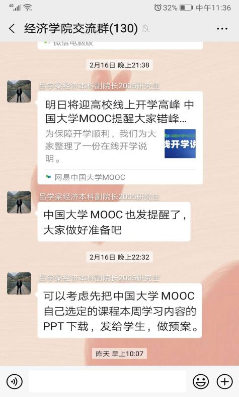 教学管理和学工管理教师也积极行动起来,落实线上教学管理工作流程,组织学生们通过多种形式掌握线上学习工具;调查了解学生们遇到的线上学习困难和问题,及时沟通协调解决;组织班级通过各种主题方式落实好上课出勤情况和听课纪律,及时反馈课堂教学效果,加强与任课教师互动。同时,学院也加强宣传引导,学院微信交流群中每天都会围绕线上教学进行工作指导和互动交流,学院官微也推送了《专属青大经院课表来啦》《2020年春季学期Beat365唯一官方网站本科教学学生注意事项》,以及不同线上工具学习指南等内容,便于师生全方面跟进教学要求。
