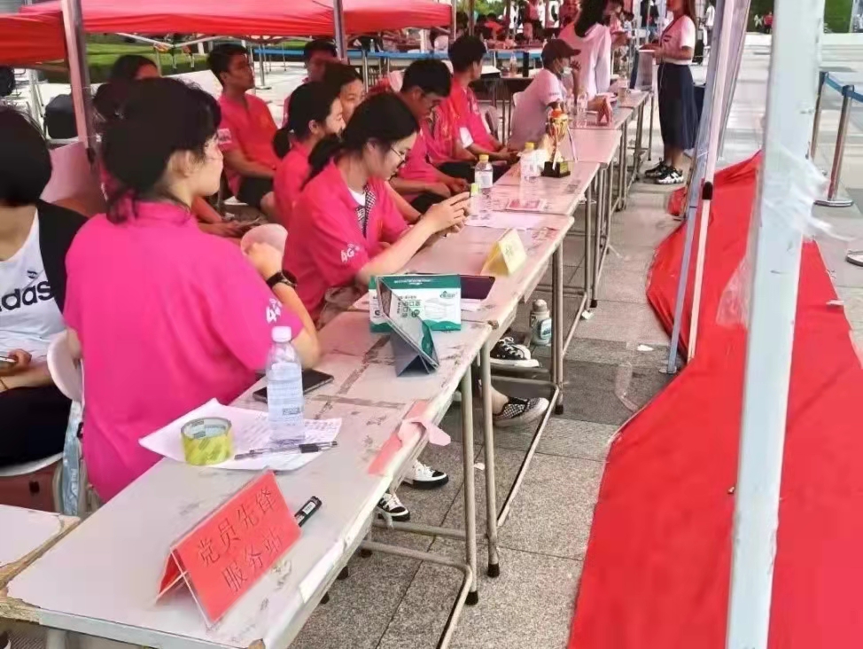 秉承着对疫情形势负责的态度,新生入校首先需要通过疫情防控检查区。完成防疫检查后,依次通过图文中心迎新区、新生签名留影区、学长学姐答疑区,在朋辈导师们和志愿者们的帮助下完成资料登记、拍照签名留念等任务。最后一站是作别父母陪伴区,新生们纷纷告别父母,在朋辈导师和志愿者的指导下顺利入住。