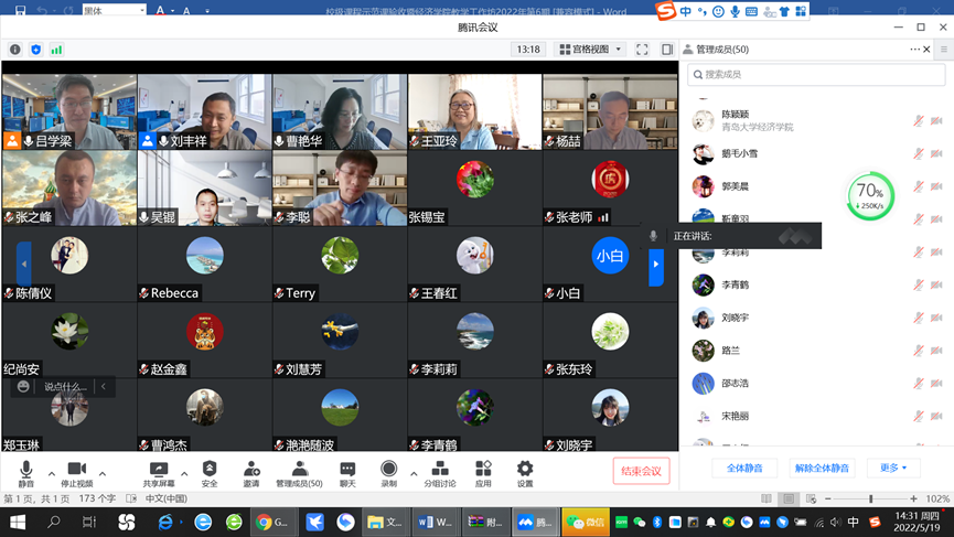 Beat365唯一官方网站李莉莉老师、张之峰老师、李聪老师、杨喆老师分别汇报了立项建设的《多元统计分析》《经济法》《投资银行学》《微观经济学》四门课程思政示范课的建设情况。四位老师的报告精彩纷呈,既有考核方式的改革,又有生动案例的导入,既有思政目标的有效融入,又有思政教育的全过程设计。