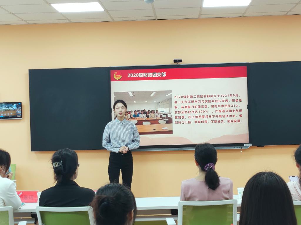 通过前期先进团支部评选及团支书讲团课活动,2020级财政2班、金融1班、金融2班、金融3班、经济4班、跨境电商及2021级金融1班、金融3班、金融4班、经济4班、跨境电商共十个优秀团支部脱颖而出。各班团支书从支部思想、学习、工作、生活以及获奖情况、未来展望等方面进行了充分的风采展示。各支部在五育工作、学风建设、志愿服务、文体科创等方面各具特色,为基层团支部的建设带来了宝贵的经验。