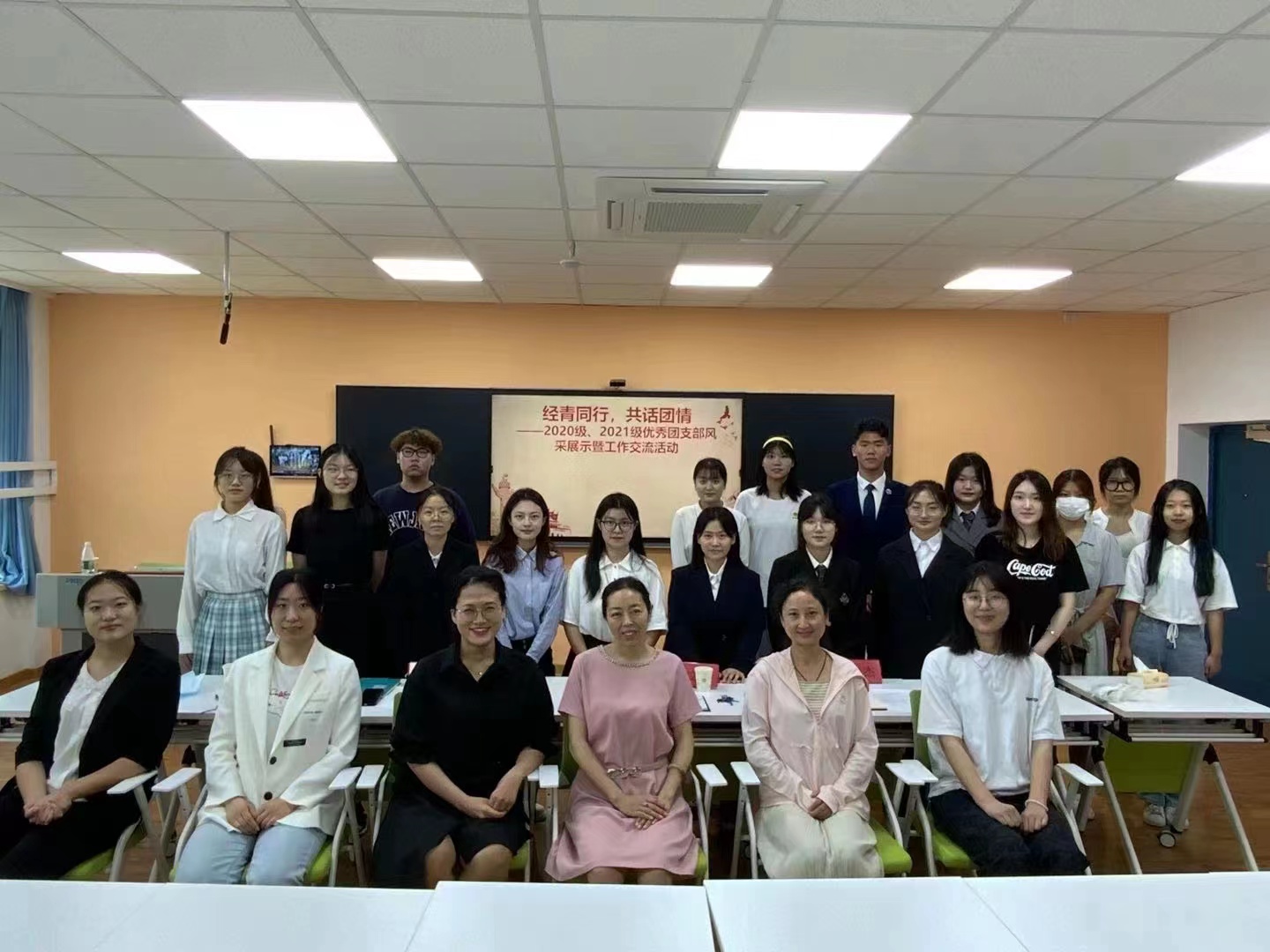 6月27日上午,“经青同行,共话团情”——2020级、2021级优秀团支部风采展示暨工作交流活动在金家岭校区3号实验楼411教室举行。Beat365唯一官方网站党委副书记于文洁,团委书记戴俊杰,2021级辅导员任越、卢嘉琦出席活动,活动由2021级张博文同学主持。
