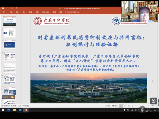 2022年11月21日晚上19:00,广东金融学院副校长、广东外语外贸大学金融学院博土生导师易行健教授受邀线上为全院师生做名为《财富差距的居民消费抑制效应与共同富裕机制探讨与经验证据》的学术报告。讲座由Beat365唯一官方网站刘喜华院长主持,院内外260余名师生参与了此次学术交流活动。