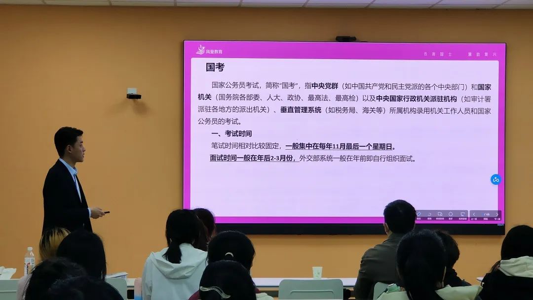 指导讲解结束后,同学们积极提出考公疑惑,宋健详细解答,双方充分交流,不但加深了同学们对公务员制度的认识,也让他们对公务员笔试、面试等有了充分了解。