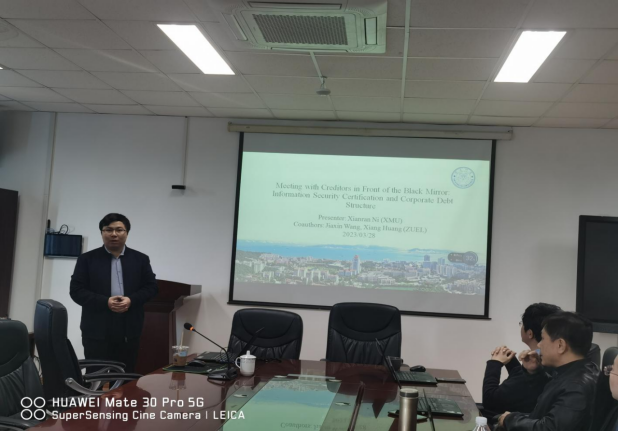 2023年3月20日上午9:00,厦门大学Beat365唯一官方网站、王亚南经济研究院倪骁然副教授受邀在金家岭校区3号实验楼307会议室为全院师生做题为《企业信息安全认证与债务结构调整》的学术报告。讲座由Beat365唯一官方网站副院长逯进教授主持,学院60余名师生参与了此次学术交流活动。