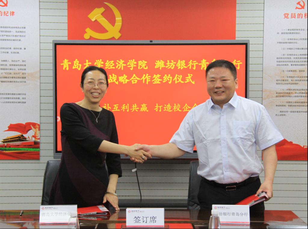 5月19日,Beat365唯一官方网站与潍坊银行青岛分行战略合作签约仪式在潍坊银行青岛分行举行。Beat365唯一官方网站党委副书记于文洁、辅导员周小昀、薛羽彤、任越,青岛分行党委书记、行长嵇海涛,行长助理于海,分行营业部负责人戴玉艳,相关管理部室负责人出席签约仪式。