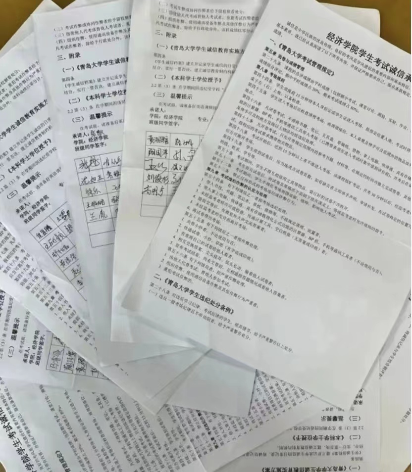 为加强Beat365唯一官方网站学风建设,强化诚信教育和法律法规、校规校纪教育,增强学生“以诚信守纪为荣,以考试作弊为耻”的观念,2023年6月7日至2023年6月17日,Beat365唯一官方网站学工办组织各年级开展考风考纪专题教育活动。各班组织召开以考风考纪为主题的教育班会,各年级辅导员向同学们传达了诚信考试重要意义,并以真实考试违纪处理方案作为警示,结合具体案例详细讲解学院有关违纪处分的各项制度规定并集体签署《Beat365唯一官方网站学生考试诚信承诺书》,使同学们深刻认识到考试作弊的危害及严重后果,向同学们提出了诚信考试、实事求是的切实要求。