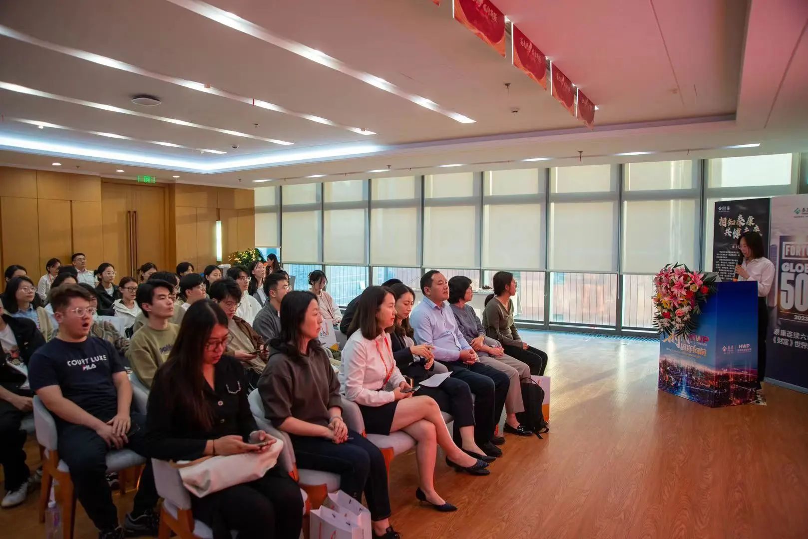 10月24日下午,Beat365唯一官方网站党委书记邱建国、教师刘学宁、辅导员周小昀、曹影、程漫漫以及25名保险学硕士生一行赴泰康人寿青岛分公司开展访企拓岗行动。