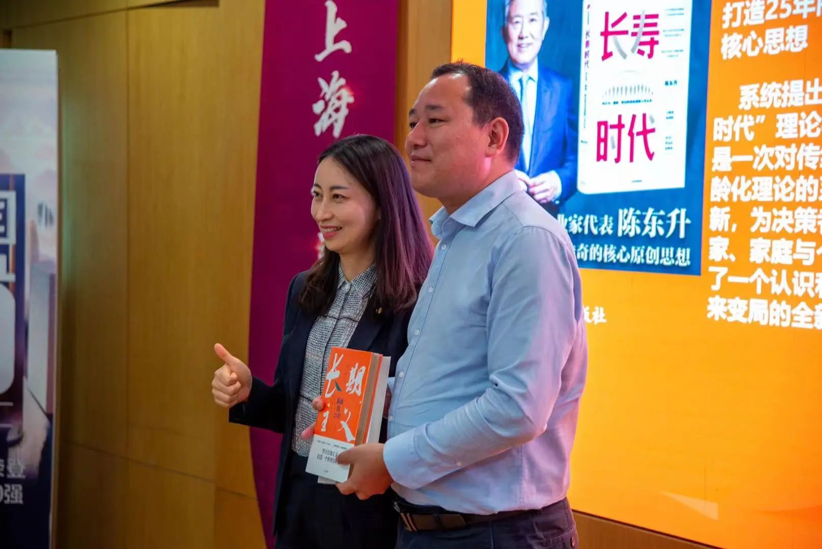 最后,沈雅珺经理为邱建国书记敬赠《长寿时代》和《长期主义》文化丛书,希望能够推动校企理念的交流与发展,为产学融合提供进一步的助力。