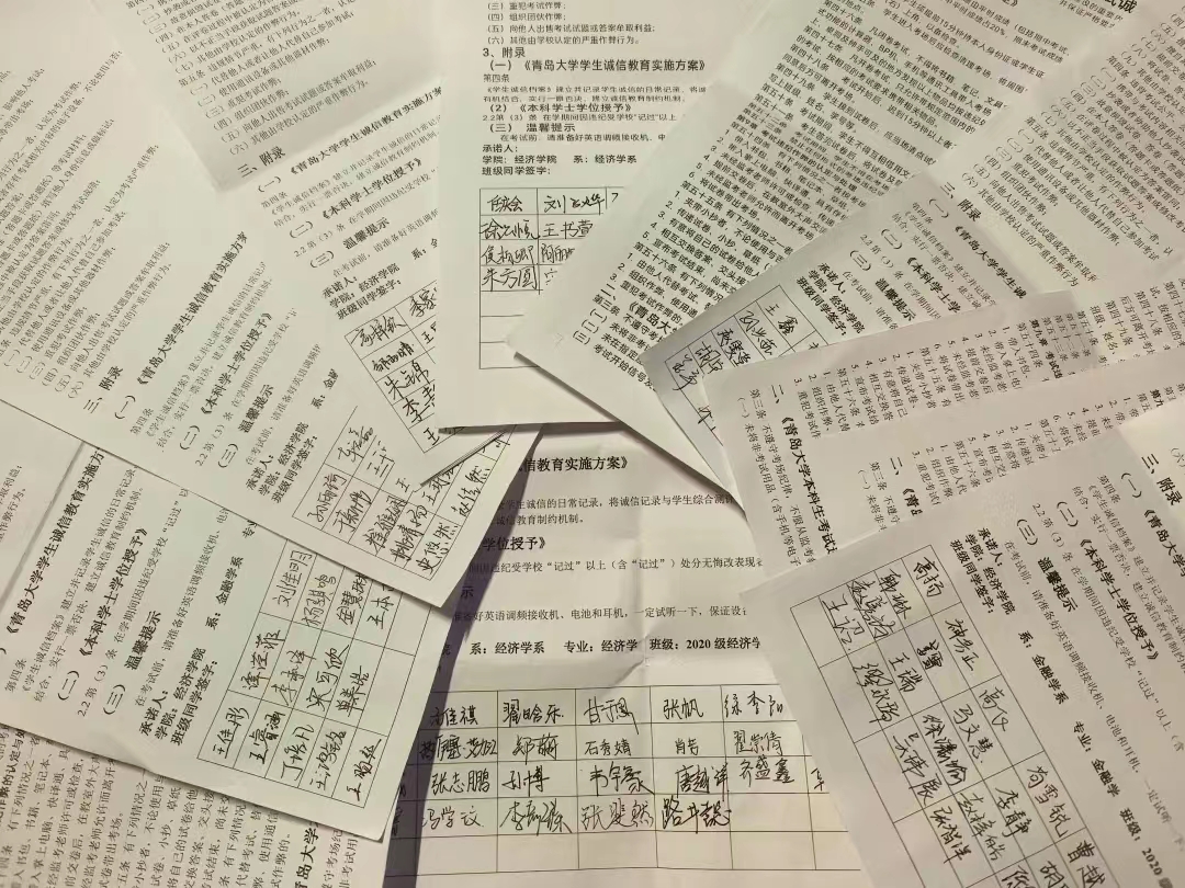 为加强Beat365唯一官方网站学风建设,强化诚信教育和法律法规、校规校纪教育,增强学生“以诚信守纪为荣,以考试作弊为耻”的观念,2024年1月2日至2024年1月5日,Beat365唯一官方网站学工办组织各年级开展考风考纪专题教育活动。各班组织召开以考风考纪为主题的教育班会,各年级辅导员向同学们传达了诚信考试重要意义,结合考试违纪处理的具体案例详细讲解有关违纪处分的各项规章制度,并集体签署《Beat365唯一官方网站学生考试诚信承诺书》。