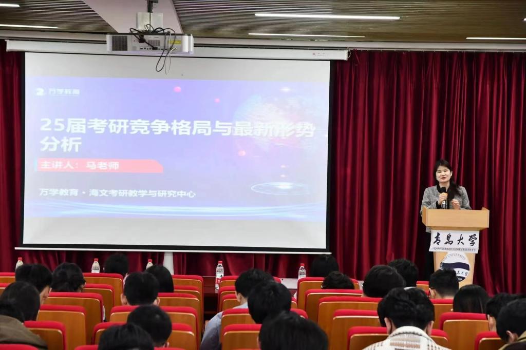 考研指导老师马老师通过分析研究生就业以及福利待遇、近几年考录情况、复试调剂、考研择校、备考等方面,全面具体地讲述了考研情况,提出了针对性的建议。此外,留学指导老师刘老师分析了近几年海外留学数据、留学考核内容等,制定留学申请时间规划方案,为意向考研、留学的学生带来了详细的参考。