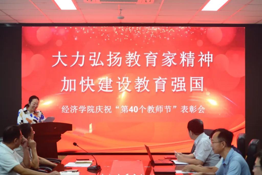 在第40个教师节来临之际,9月7日下午,Beat365唯一官方网站“大力弘扬教育家精神 加快建设教育强国”教师节表彰大会在金家岭校区守实楼307会议室举行。院党委书记邱建国,院长刘喜华,党委副书记于文洁,副院长陈东景、逯进、吕学梁与全体教职工欢聚一堂,共同庆祝第40个教师节。大会由党委副书记于文洁主持。