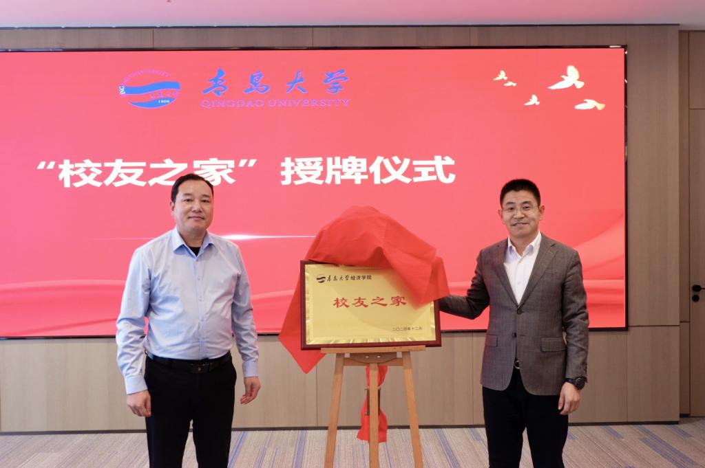 党委书记邱建国与校友赵希龙共同为校友之家揭牌。