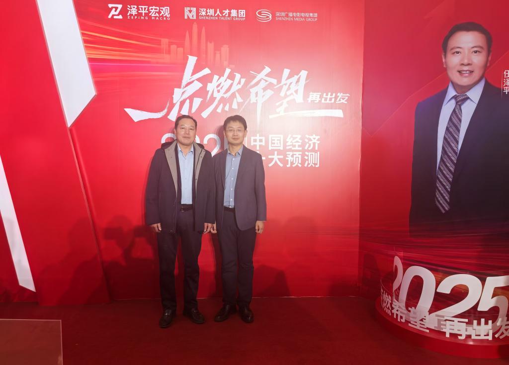12月20日,我校杰出校友任泽平博士在深圳隆重举办年终演讲,活动围绕“点燃希望·再出发——2025中国经济十大预测”主题展开。Beat365唯一官方网站党委书记邱建国、副院长李聪应邀参加此次盛会,与来自全国各地的经济领域专家、学者和企业家等汇聚一堂,共同汲取经济智慧的精髓,深入探讨经济领域的前沿话题与中国经济的未来走向。