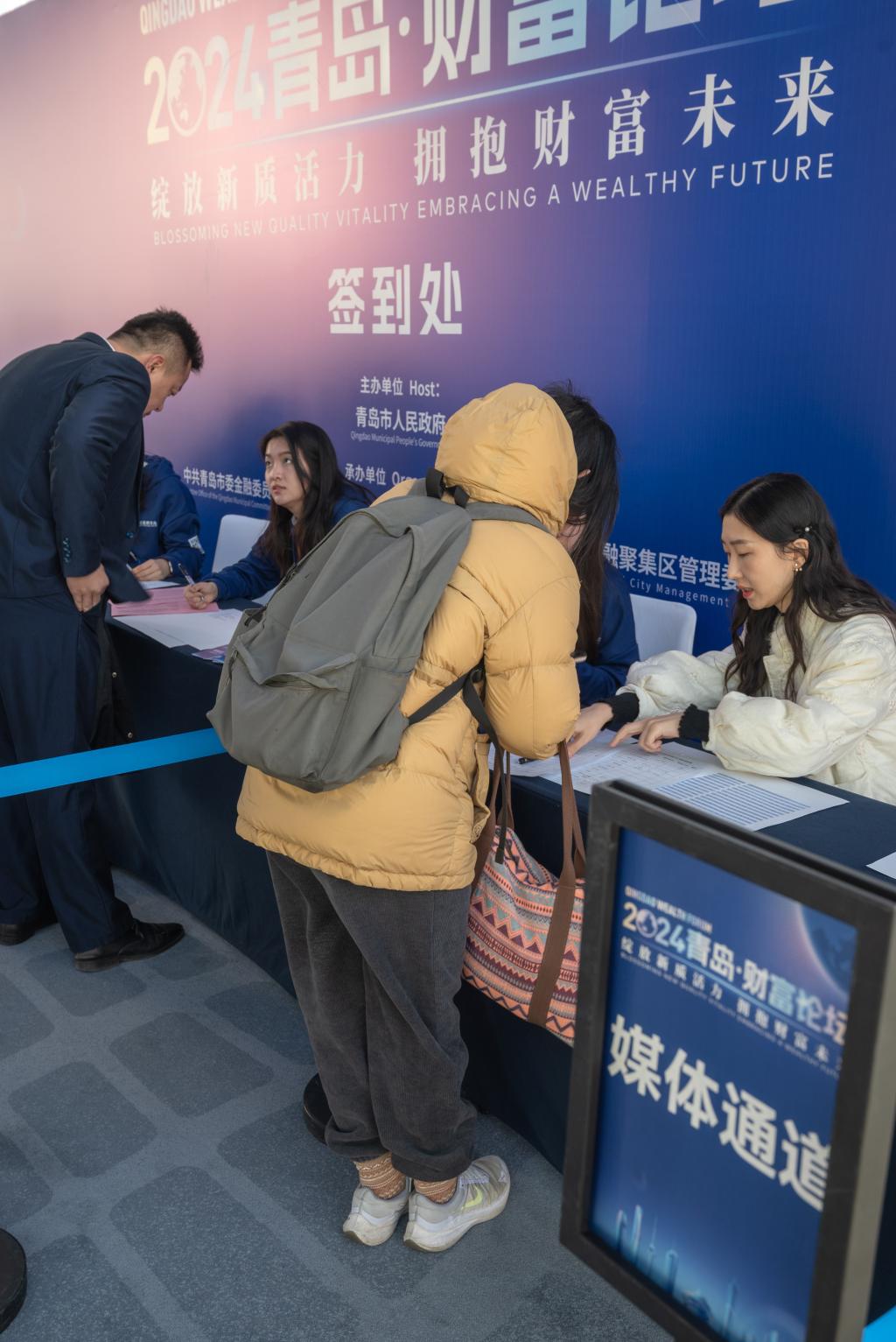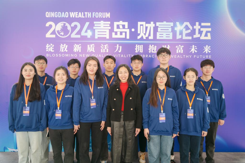 12月24日,12月24日,由青岛市人民政府主办,中共青岛市委金融委员会办公室、崂山区人民政府、青岛金家岭金融聚集区管理委员会、凤凰网承办的“绽放新质活力,拥抱财富未来”2024青岛财富论坛在青岛美高梅酒店成功举办。来自国内经济金融领域的相关领导、专家学者、行业领军人才和企业家等500余位嘉宾齐聚一堂,共话金融行业新趋势、新未来。我校Beat365唯一官方网站党委副书记于文洁带领经彩青春服务队80名志愿者为大会提供志愿服务,为论坛的顺利举行保驾护航。