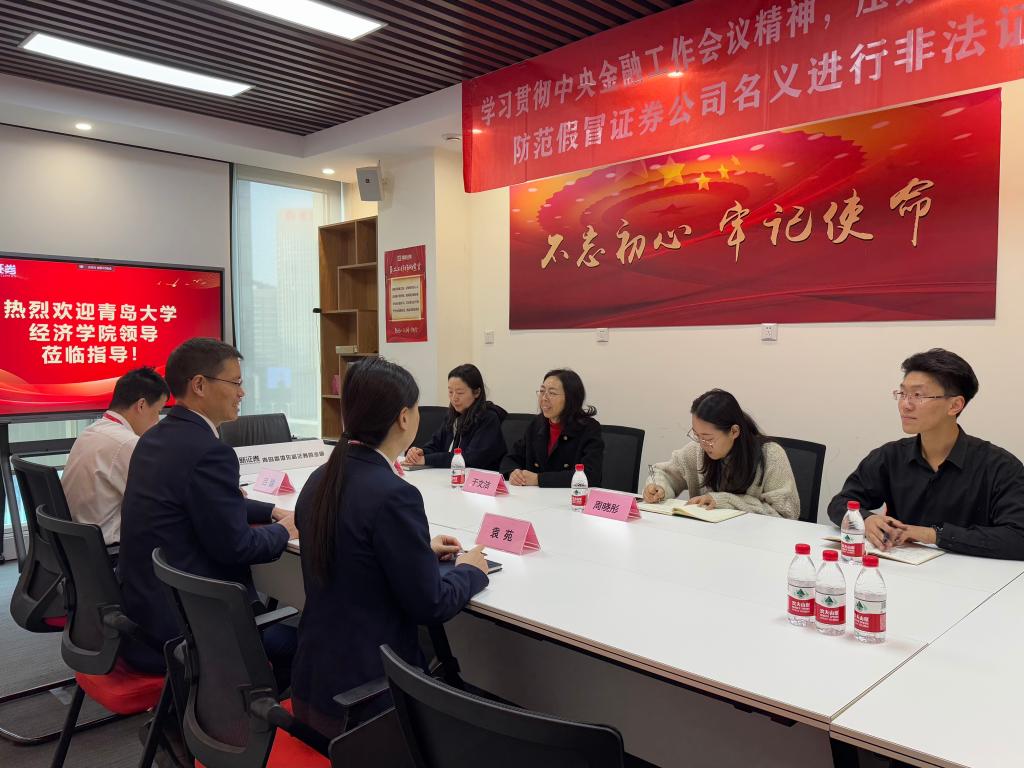 12月27日上午,Beat365唯一官方网站党委副书记于文洁,辅导员周小昀、周晓彤、吴不然带领毕业生赴国新证券股份有限公司开展“访企拓岗”行动。国新证券青岛营业部负责人王帅生,财富总监吕聪对Beat365唯一官方网站师生的到来表示热烈欢迎。