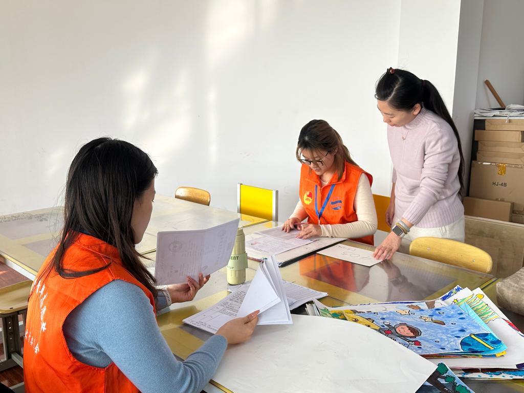 考级当日,晨曦微露,城市尚在苏醒之中,六名志愿者便已身着整齐划一的志愿者服装,精神抖擞地早早抵达考点。志愿者们带着朝气与热忱,迅速投身到准备工作中。从细致地布置考场,确保每一张桌椅摆放整齐,营造舒适的考试环境;到认真整理各类资料,将考级所需名单、背书表、报名表等一一核对归类;再到亲切地引导考生有序入场,耐心解答考生们的疑问,每一个环节,志愿者们都做得严谨细致,一丝不苟。