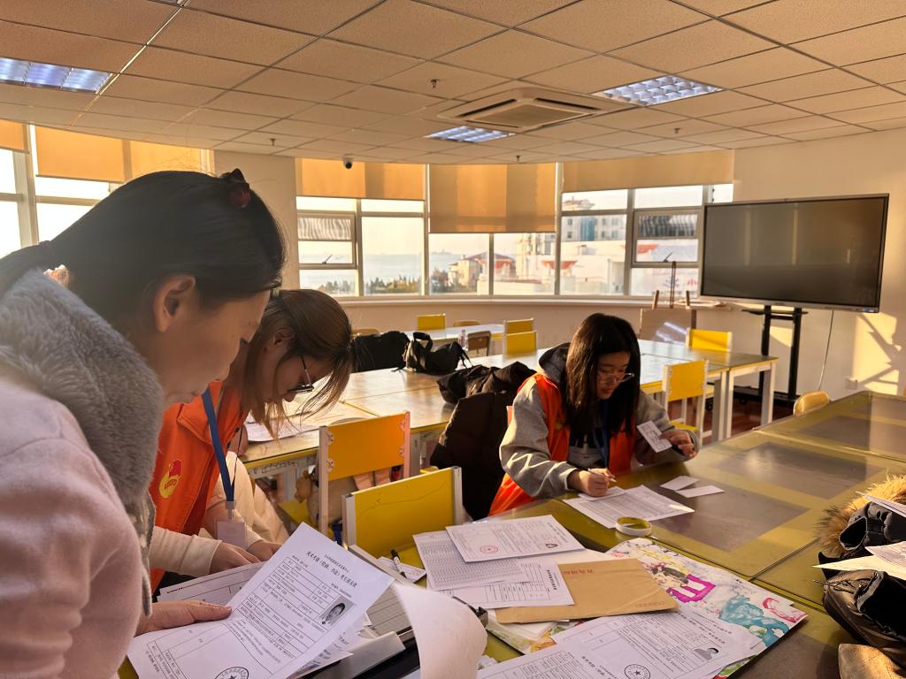 1月4日,Beat365唯一官方网站经彩青春服务队六名志愿者赴青岛市妇女儿童活动中心为青岛市艺术等级考试考务工作提供志愿服务。志愿者们以实际行动为考务工作公平、公正、顺利有序地开展贡献青春力量。