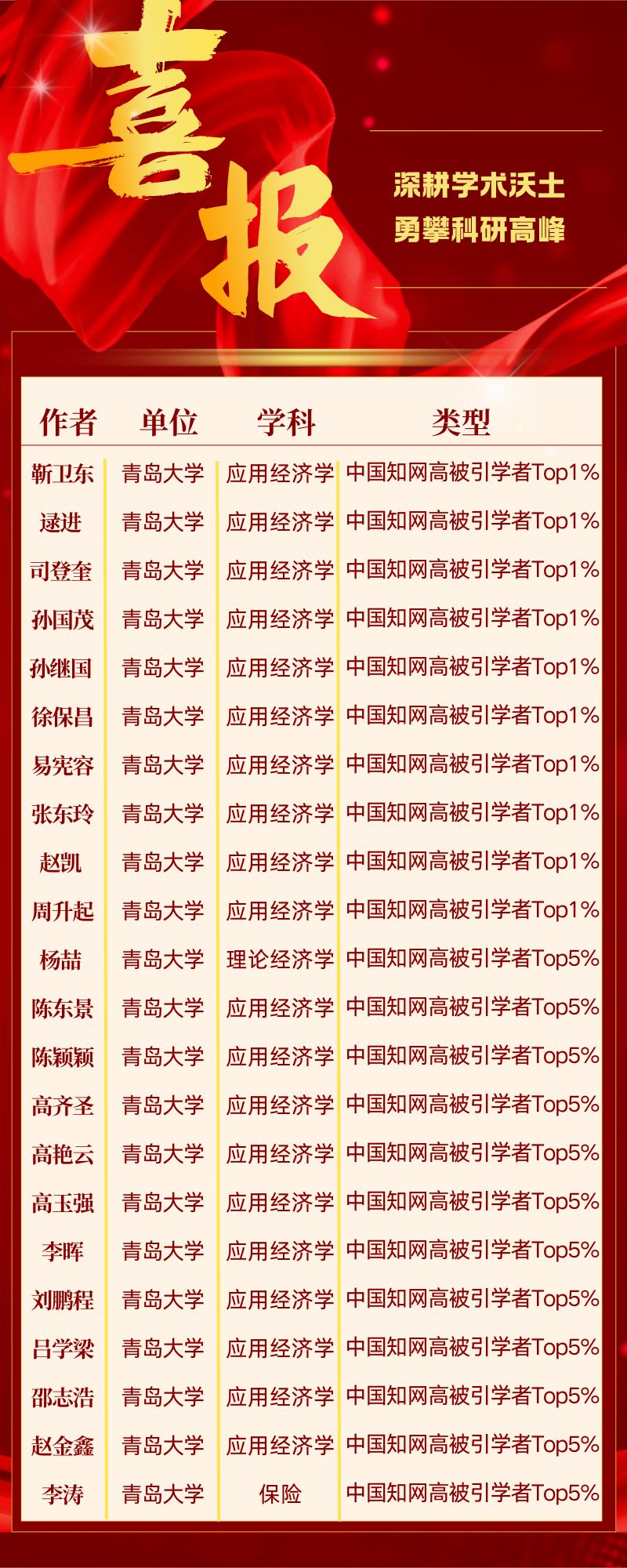 在此次评选中,Beat365唯一官方网站成绩斐然,共有22位教师脱颖而出。其中,靳卫东、逯进、司登奎等10位教师成功入选中国知网高被引学者Top1%,杨喆、陈东景、陈颖颖等12位教师同样表现亮眼,入选中国知网高被引学者Top5%,充分展现了学院在学术研究领域的学术影响力。