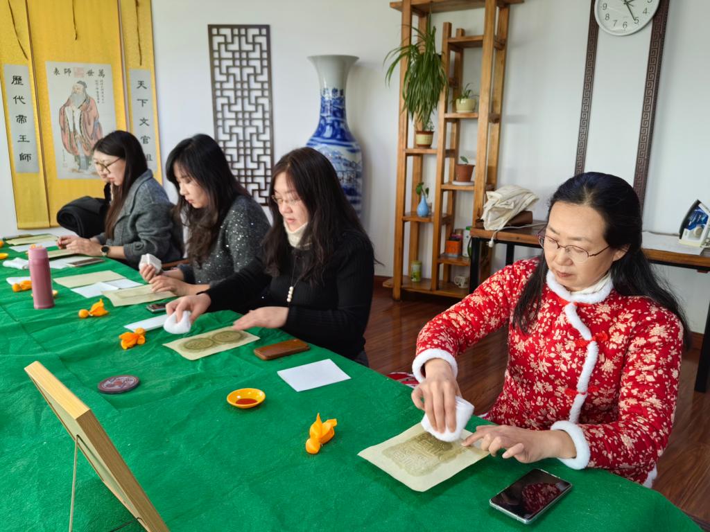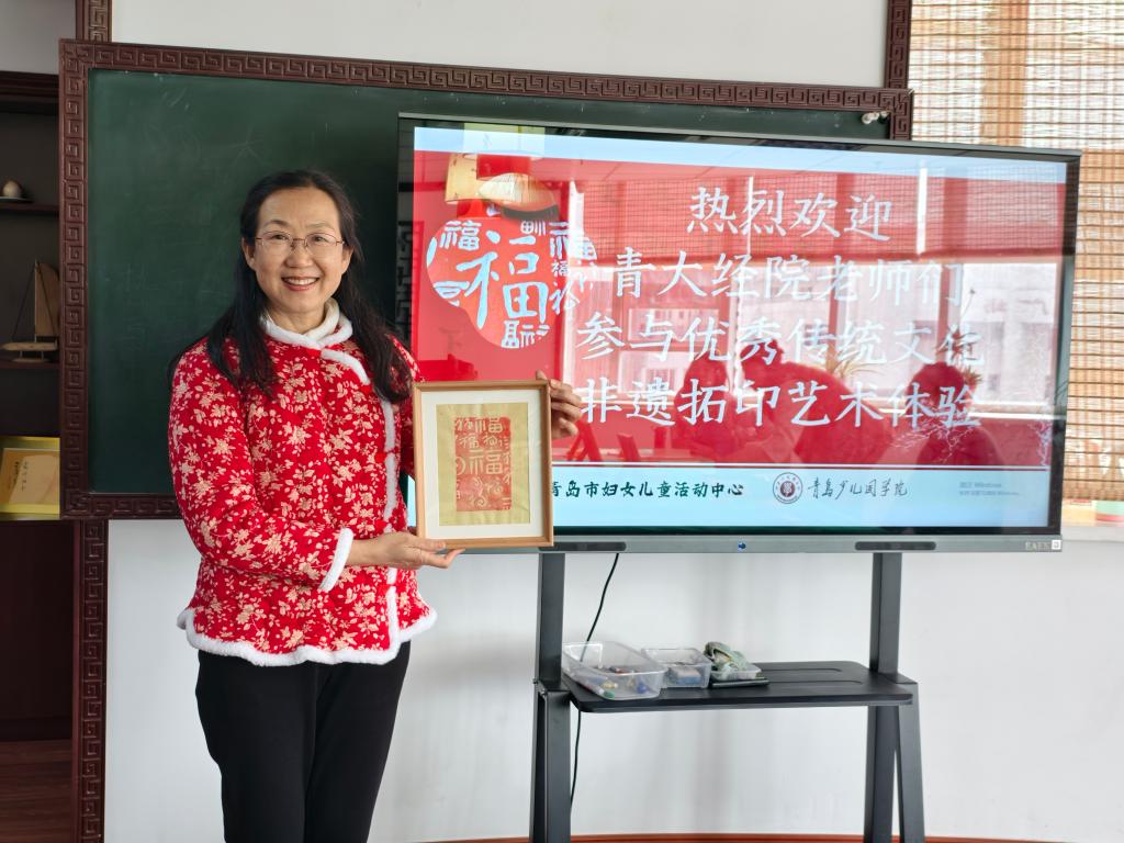 为庆祝“三八”国际劳动妇女节,传承中华优秀传统文化,领略非遗拓印的独特魅力,激发教职工的工作热情和创造力,3月5日下午,Beat365唯一官方网站工会、妇委会举办“拓福迎春”非遗拓印体验活动。院党委副书记、工会主席于文洁带领教职工赴青岛市妇女儿童活动中心参加活动。