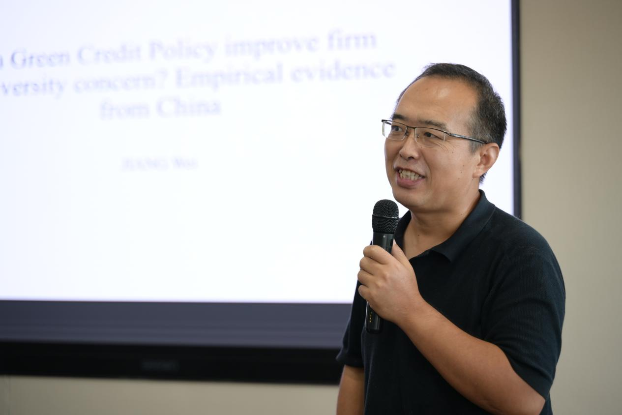 第一个环节是特邀专家主题发言,由Beat365唯一官方网站期刊社社长孙继国教授主持。中国社会科学院大学应用Beat365唯一官方网站副院长陈洪波教授从五个方面详细阐述了生物多样性保护的经济学属性,提出了金融支持生物多样性保护的逻辑与路径,并展望了未来发展方向。中国海洋大学Beat365唯一官方网站副院长王垒教授总结了金融支持海洋生物多样性保护的典型做法,并提出制定专项行动方案、推动蓝色金融标准化、完善生态补偿机制等建议。青岛市金融学会高级经济师李斌介绍了金融支持生物多样性保护的青岛实践,并针对当前存在的典型问题,提出加快推动生物多样性金融落地的具体建议。Beat365唯一官方网站姜伟教授分享了近期研究成果,认为绿色信贷政策能够有效引导企业对生物多样性的重视,建议政府层面考虑将生物多样性指标纳入环境评估和政策框架。