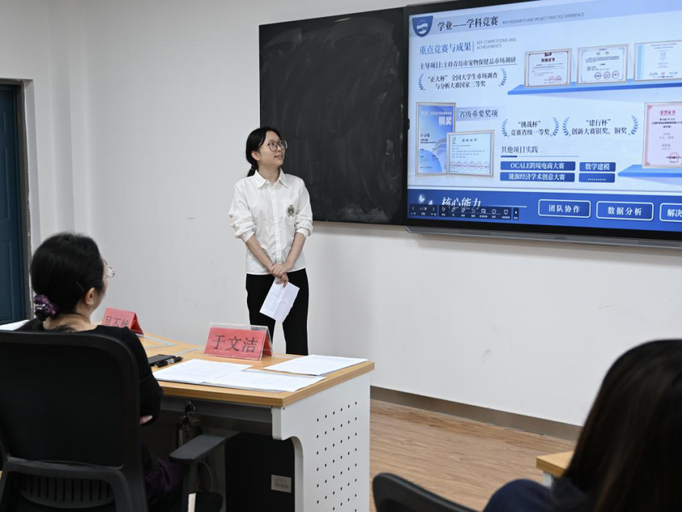 经过前期个人申报和学院初审,共有10名同学进入答辩环节。答辩过程中,候选学生围绕学业成绩、竞赛与科研成果、社会实践、志愿服务、综合素质等方面进行展示,充分展现了经院学子扎实的专业基础、积极的创新意识和良好的精神风貌。每位同学在有限的时间内,不仅汇报了自己的成绩与收获,也分享了成长过程中的感悟与展望。评审小组始终秉持公平、公正、公开的原则,以高度负责的态度,认真听取每一位候选人的现场阐述,并结合其书面申请材料进行全面审阅与慎重评议。