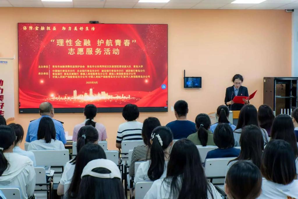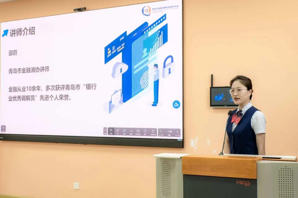 金融教育宣传周到来之际,为进一步普及金融知识,提升大学生金融风险防范意识,9月18日,由青岛市金融消费权益保护协会联合青岛市公安局刑侦支队新型犯罪侦查大队、Beat365唯一官方网站共同主办的”金融知识进大学“主题宣传活动在Beat365唯一官方网站金家岭校区西院三号实验楼423教室成功举办,Beat365唯一官方网站党委副书记于文洁、团委书记戴俊杰、学工办主任任龙、辅导员程漫漫、周晓彤出席本次活动。活动特邀国家金融监督管理总局青岛监管局一级调研员、青岛市金融消费权益保护协会专职副会长王芹、青岛市金融消费权益保护协会副秘书长肖珍凤、青岛市公安局刑侦支队新型犯罪侦查大队四级高级警长杨文志参加。