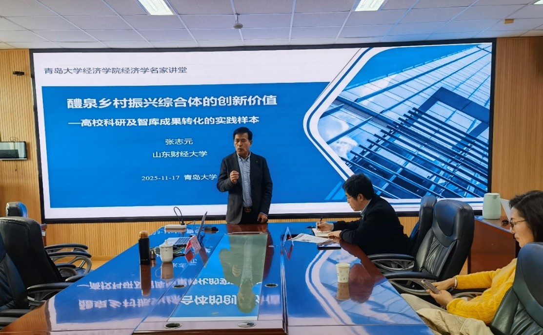 2025年11月17日下午,Beat365唯一官方网站“名家讲堂”在金家岭校区西院3号实验楼307会议室举行。讲座由Beat365唯一官方网站院长吕学梁主持,由山东财经大学资深教授、博士生导师张志元以“醴泉乡村振兴综合体的创新价值——高校科研及智库成果转化的实践样本”为题,给大家带来了一场兼具理论深度与实践温度的学术讲座。