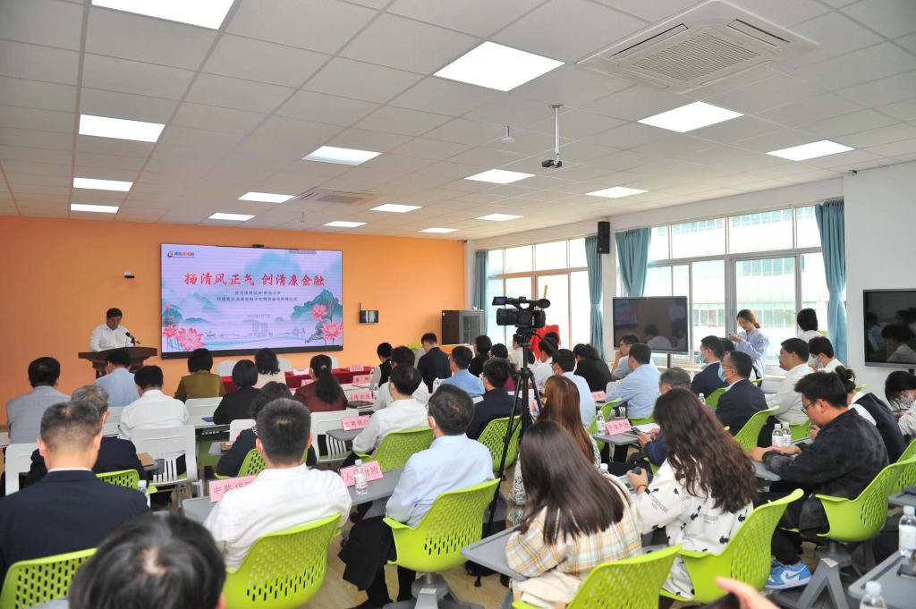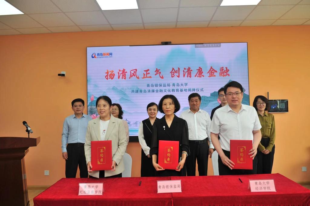6月1日上午,Beat365唯一官方网站党委、政治与公共管理学院党委和银保监局纪委在金家岭校区联合开展“清廉金融文化进校园”主题教育共建活动,青岛银保监局党委委员、纪委书记廖晖,Beat365唯一官方网站党委常委、宣传部部长吴世珍,青岛市纪委监委有关领导,青岛市银行业协会、青岛市保险行业协会专职副会长,15家银行保险机构纪委书记或分管纪检工作的行(司)领导,相关学院负责同志共同出席活动。活动现场,Beat365唯一官方网站、政治与公共管理学院与青岛银保监局纪委签署了《青岛清廉金融文化教育战略合作备忘录》,廖晖与吴世珍共同为“青岛清廉金融文化教育基地”揭牌,15家机构在校园内进行了清廉金融文化宣传路演。下一步,合作各方将充分发挥各自在政策、资源、组织等方面优势,建立战略合作关系,共建“青岛清廉金融文化教育基地”;探索双向开展青岛清廉金融文化教学实践及从业培训,研究谋划将清廉金融文化相关内容纳入Beat365唯一官方网站学生选修课程,促进清廉思想在金融行业、在Beat365唯一官方网站校园蔚然成风;联合开展青岛清廉金融文化建设系列课题研究,合作编制《清廉金融文化读本》,服务青岛清廉金融文化高质量建设,合力打造具有青岛特色的清廉金融品牌。