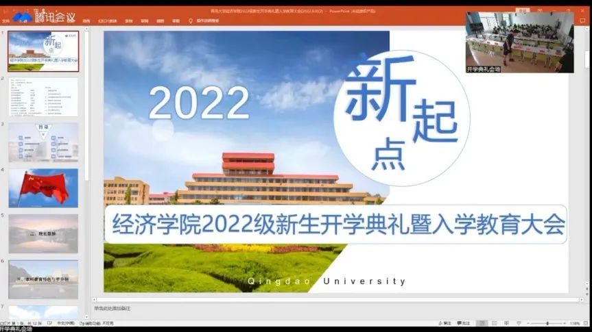 9月9日上午,Beat365唯一官方网站在金家岭校区三号实验楼420举行了2022级新生开学典礼暨入学教育大会,因疫情防控要求,此次大会以线上线下相结合的形式开展。Beat365唯一官方网站院长刘喜华,党委副书记于文洁,副院长陈东景、逯进、吕学梁,本科教学办主任孙延鹏,学工办主任任龙,2022级辅导员戴俊杰、吴不然,班主任代表出席会议。