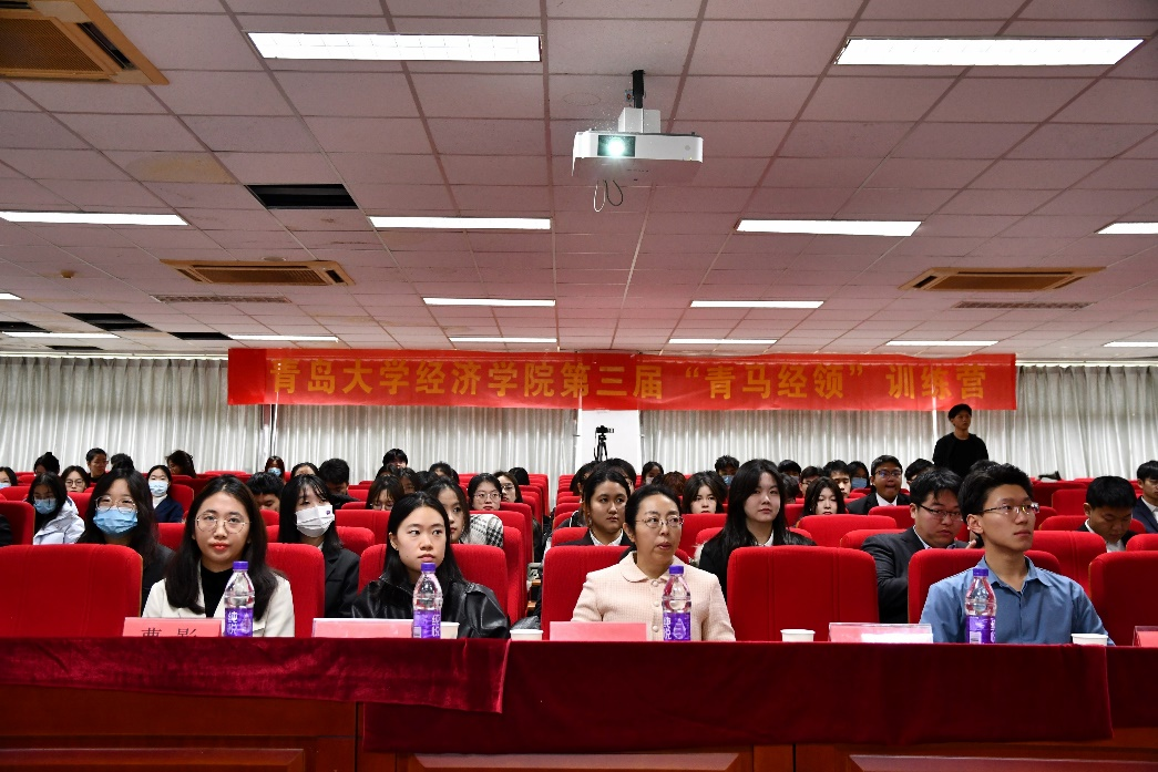 为进一步加强学生干部的思想建设和作风建设,不断提升学生干部的履职能力,强化学生干部的宗旨意识、表率作用和严实作风,培养一支新时代优秀大学生骨干队伍,11月25-26日,Beat365唯一官方网站举办第三届“青马经领”训练营,邀请校内外老师,以书记谈、专家讲、朋辈说、营员悟等环节展开主题培训。Beat365唯一官方网站团委副书记赵斐斐,Beat365唯一官方网站党委副书记于文洁、团委书记戴俊杰、辅导员曹影、吴不然、薛羽彤及训练营全体学员出席活动。