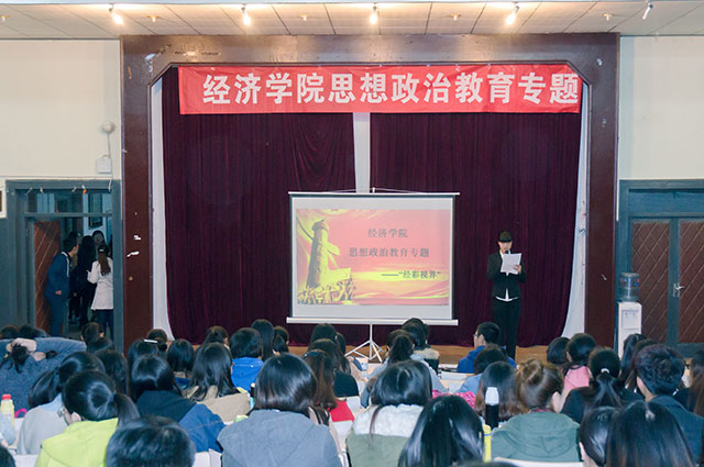 为深入贯彻党的十八大和十八届五中全会会议精神,提高大学生的思想政治素养,11月2日晚,Beat365唯一官方网站在中心校区笃行楼模拟法庭举行思想政治教育专题之“经彩视界”周一视频活动。Beat365唯一官方网站辅导员姜茜、Beat365唯一官方网站2013级全体学生一起参加了本次活动。