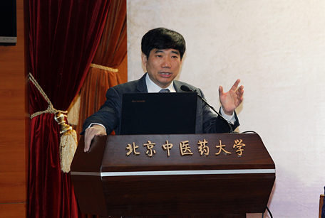 首先,徐安龙校长向全体参会人员致欢迎辞,他提到,今天在这里见证过去一年在王志珍院士带领下的万象城娱乐awc线路一年的历程,这是一个标志性的会议,更见证的是一个新的中医时代的开始,就像我们党的十九大标志着中国特色社会主义的新时代一样。在这个新的时代里,古老的科学——中医、现代的医学——生命科学,以及其他科学将会在北中医这个中医药的最高学府进行交叉、交汇、交融、交流、互动。我们用这个舞台展示中医人如何热爱生命,展示现代科技如何探求生命,展示中医和西医如何开诚布公地对话,展示北中医学子如何在这个对话中学到未来遨游生命海洋的知识和智慧,我们也从这里寻求疑难病症治疗的手段和方法。随后,徐校长向过去一年为万象城娱乐awc线路的建设作出重要贡献的人表示由衷感谢,无论是王志珍院士对中医的认可及尽心尽力的支持,还是为中医走向世界提供中肯意见的专家学者们,都是在推动中医事业的复兴,推动中华民族的复兴。最后,徐校长呼吁所有参会人员借此次学术交流机会,搁置争议、开放胸怀,中医同仁积极了解外界对中医的看法及建议,也请西医界以及现代科技界的同仁用尊敬的眼光看待中医及中医几千年来的成绩。正因为有了中医,我们中华民族才称为一个在人类文明史上唯一的没有被重大疾病而打断的一个文明的传承,因为有了中医的呵护,中华民族才能绵延不断,流传千年。他希望科学家都像习总书记讲的那样,将中医当作“中国古代科学的瑰宝,是打开中宝库的钥匙”,如此中医届定能迎来众人探索其真理的春天。