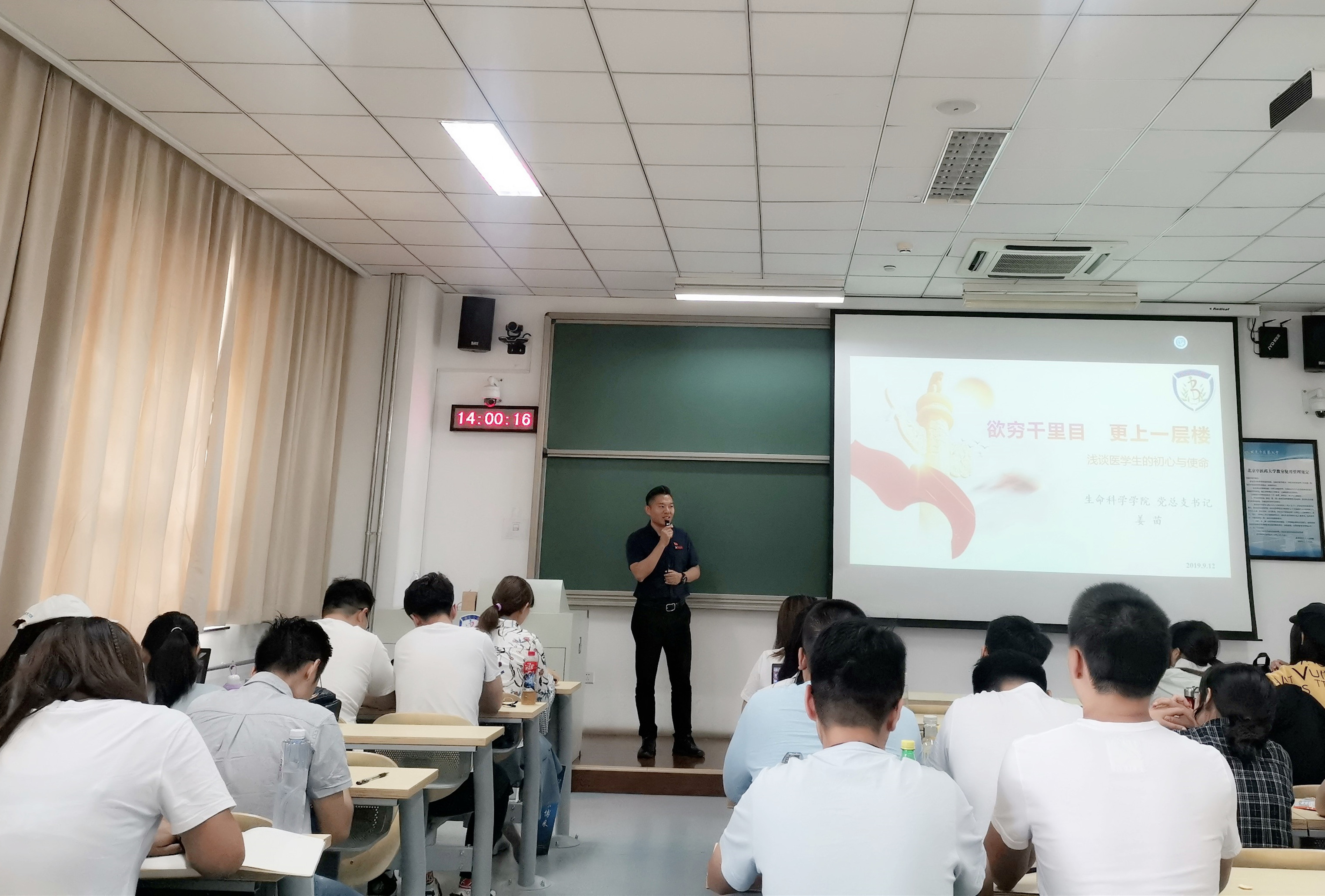 2019年9月12日,在良乡校区162教室,万象城娱乐awc线路新生入学教育系列活动之“新生第一次党课”顺利举办。学院党总支书记姜苗以“《欲穷千里目,更上一层楼》——浅谈医学生的初心与使命”为题,结合自己的学习及工作经历,给新生们上了一堂生动的党课。