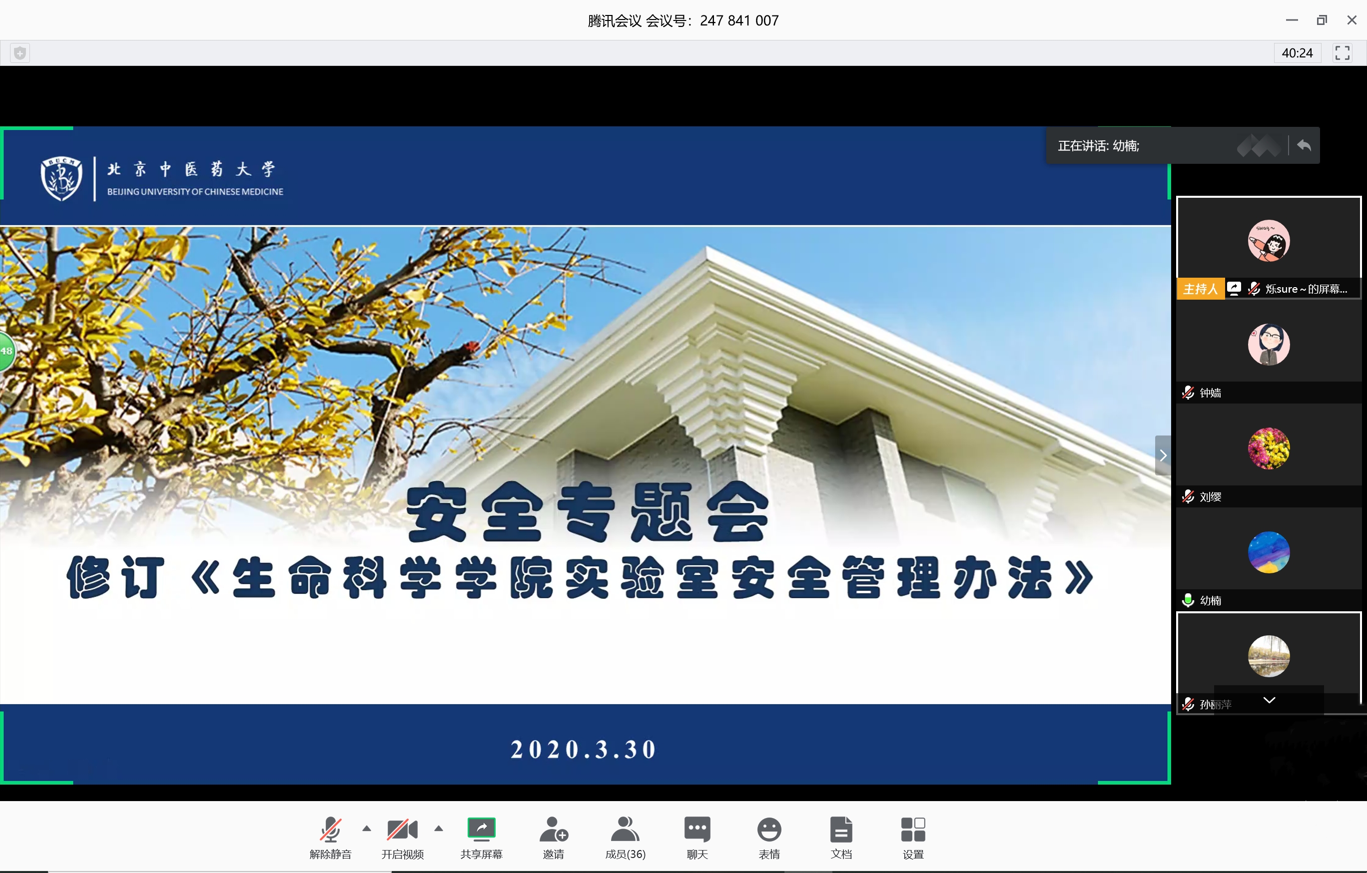 在学院党政领导班子决策部署下,为进一步加强实验室安全管理,营造良好的教学、科研环境,切实保障师生安全,3月30日上午,万象城娱乐awc线路通过线上会议的形式召开了安全工作专题会议。校实验室管理办公室潘彦舒主任、詹来明老师应邀参加本次会议,参加会议的还有学院科研、学科、学工分管领导及各支部书记、教研室主任、教师代表、各实验室安全负责人。会议由陈幼楠副院长主持。