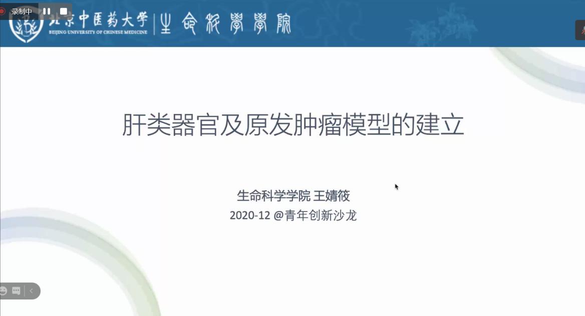 王婧筱老师作了题为《肝类器官及原发肿瘤模型的建立》的报告。首先简要介绍了类器官的概念,肝类器官的形态功能特点,展示肝类器官的纤维化模型的病理标本切片、二次谐波显微镜成像、单细胞测序,通过药物干预肝类器官的纤维化模型研究;引申介绍了肝类器官脂肪性肝炎模型、肿瘤类器官的体外3D培养模型、免疫正常动物原发模型的特点。
