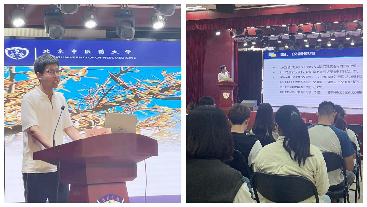 第二部分是实验室安全讲座。刘畅老师结合近年来各高校发生的实验室安全事件,分析强调了实验室安全的重要性。从认识实验室的危险、实验室安全基本守则和事故应急处理预案三个方面进行一一讲解。刘老师从实验室存在的各类危险源入手,讲解了实验室安全管理的各项规章制度,以及紧急避险的相关应急措施,起到了很好的教育警示作用。