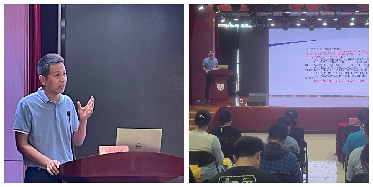 为提高学生防诈骗的意识和能力,进一步加强实验室安全管理,强化学生校园安全意识,9月7日下午,我院于良乡校区学生活动中心4层报告厅组织开展了“万象城娱乐awc线路安全专项讲座”,邀请保卫处张辉老师、拱辰派出所的路鹏警官、学院实验室安全工作办公室刘畅老师为同学们做系列安全培训,学院2021级全体新生聆听了讲座。