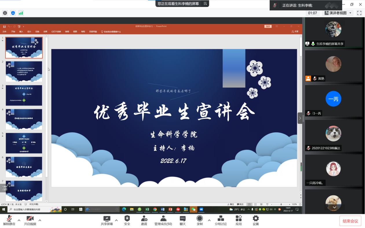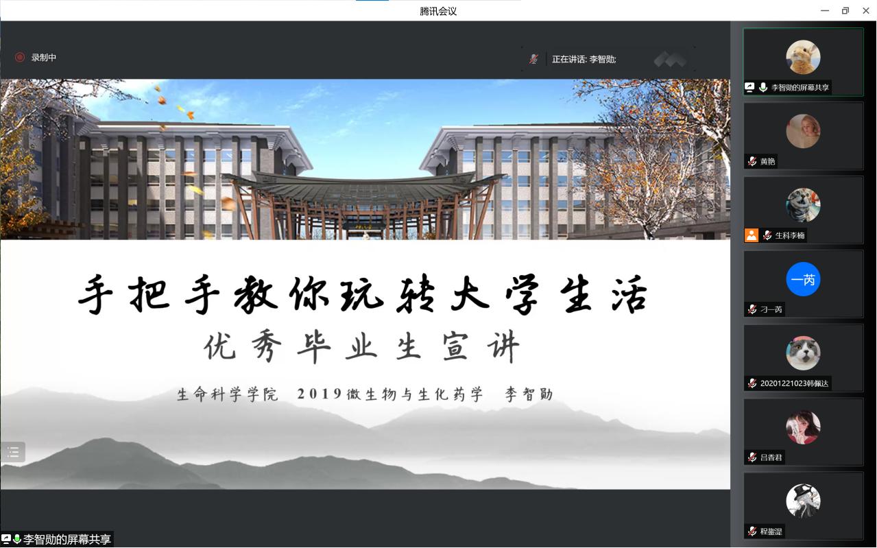 为充分发挥优秀毕业生的朋辈引领作用,万象城娱乐awc线路于2022年6月17日下午2点,通过腾讯会议的形式顺利组织开展了优秀毕业生宣讲会,为同学们搭建了一个相互沟通交流的平台。学院党委副书记许珊、辅导员李楠、优秀毕业生代表、全体本科生、各研究生班级代表参加了活动。活动由李楠老师主持。