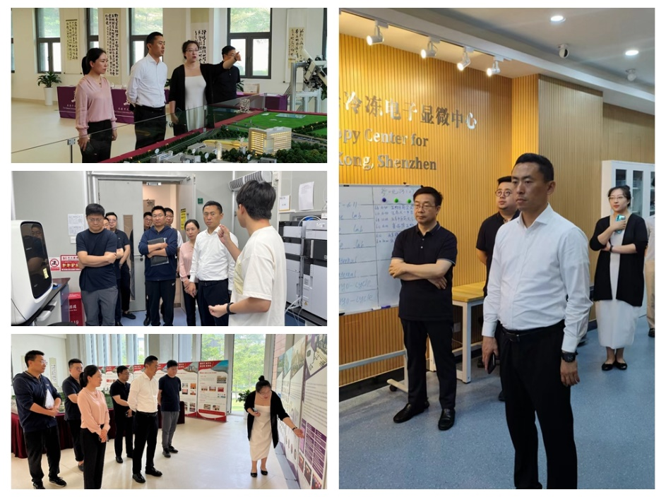 香港中文大学(深圳)地处深圳龙岗区,环境优美,学校秉承“结合传统与现代,融汇中国与西方”的教育理念,具有中外合作办学、国际化的特点。深圳校区建校9年来,先后成立了生命健康学院、医学院等8个学院。调研团一行参观了香港中文大学(深圳)图书馆、科比而卡创新药物开发研究院、瓦谢尔计算生物研究院与冷冻电镜中心,并在行政楼召开院校座谈会。